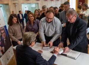 ✍️ Работали с напряжением — почти четыре часа. Встреча завершилась автографсессией, теплым и неформальным общением в холле дворца, в ходе которого ответил на многочисленные вопросы и поделился творческими планами. Александр Григорьевич также дал интервью СМИ.