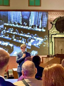 Мероприятие было организовано Национальным центром исторической памяти при Президенте РФ и проходило в интерьерах воссозданного в «Манеже» зала 600 — того самого зала, в котором в 1945–1946 годах вершился Нюрнбергский международный военный трибунал.