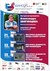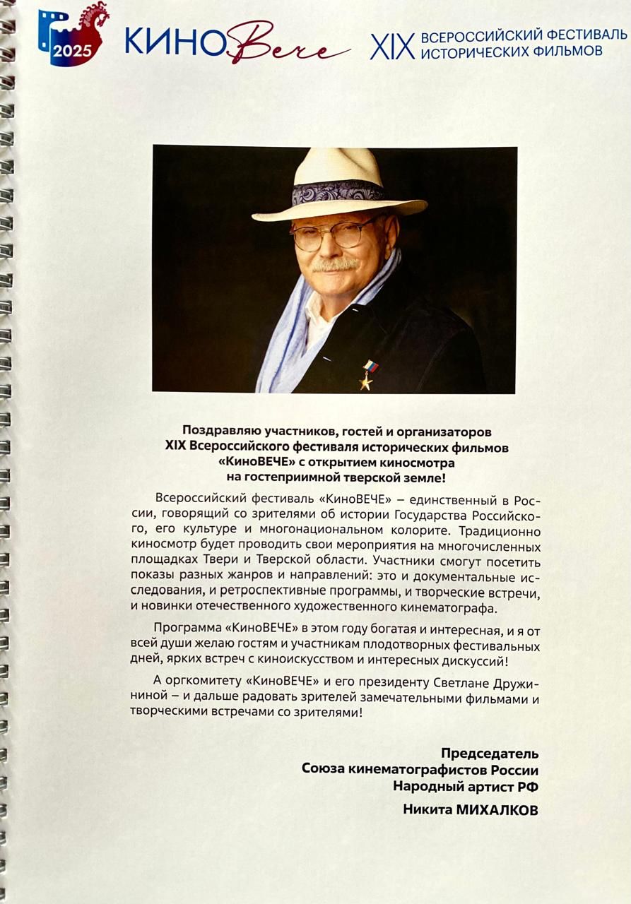 А теперь несколько слов о его направленности. Фестиваль нацелен на сохранение связи поколений, укрепление исторической памяти и патриотизма. Президент и вдохновитель «КиноВЕЧЕ» – режиссер, сценарист, продюсер, народная артистка РФ, кавалер орденов Почета и Дружбы Светлана Сергеевна Дружинина. В этом году география фестиваля помимо столицы Верхневолжья охватит города: Калязин (к/т «Горизонт»), Кимры (к/т «Волга»), Конаково (к/т «Волга»), Торжок (ВИЭМ «Гостиница Пожарских»), а также села Тургиново и Завидово.
